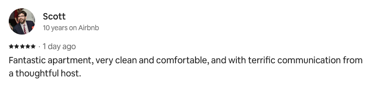 We also had many reviews on the apartment’s old Vrbo listing, again, all 5-star reviews: